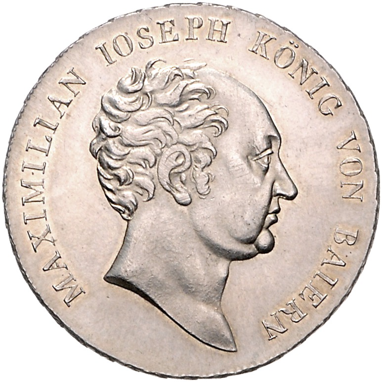 Maximilian I. Joseph 1806-1825. 1/2 Konventionstaler o.J. (vor 1837) Halber Schulpreistaler, mit Laubrand. AKS 64, Jaeger 19. vz-st