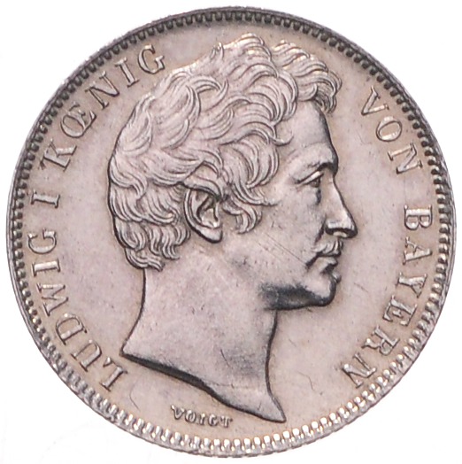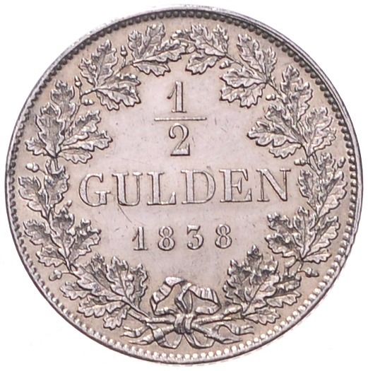 Ludwig I. 1825-1848. 1/2 Gulden 1838. AKS 79, Jaeger 61. gereinigt. vz