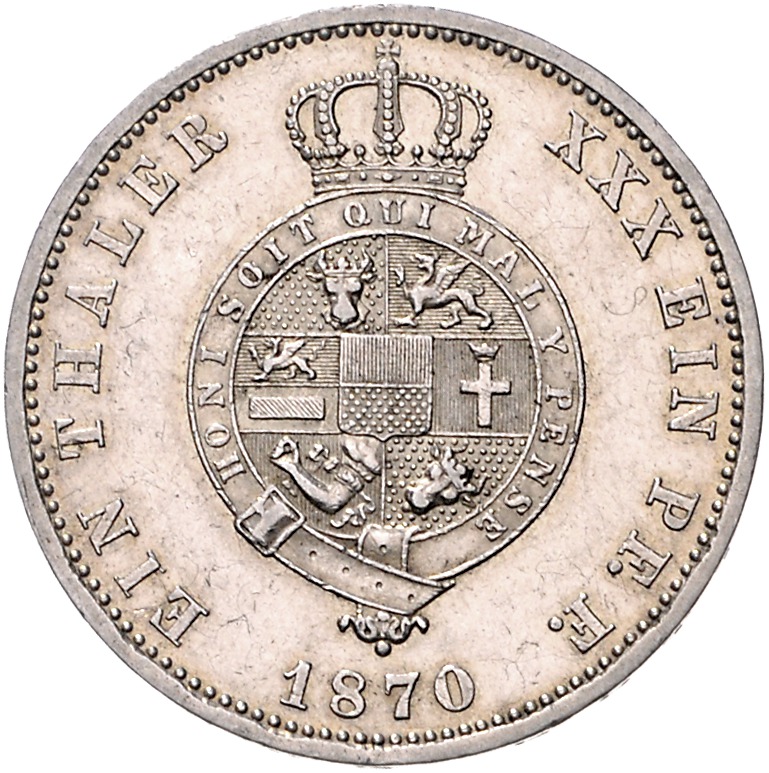 Friedrich Wilhelm 1860-1904. Vereinstaler 1870 A. Kahnt 295, Davenport 732, AKS 71, Thun 217. ss-vz