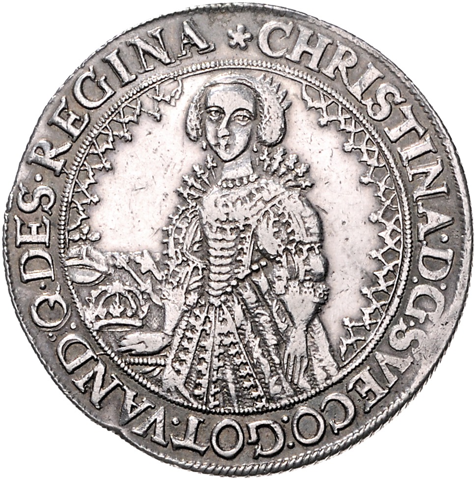 Christina 1637-1654. Reichstaler 1641. Davenport 4571, Ahlström 13a. Felder l. poliert, kl. Hklsp. ss