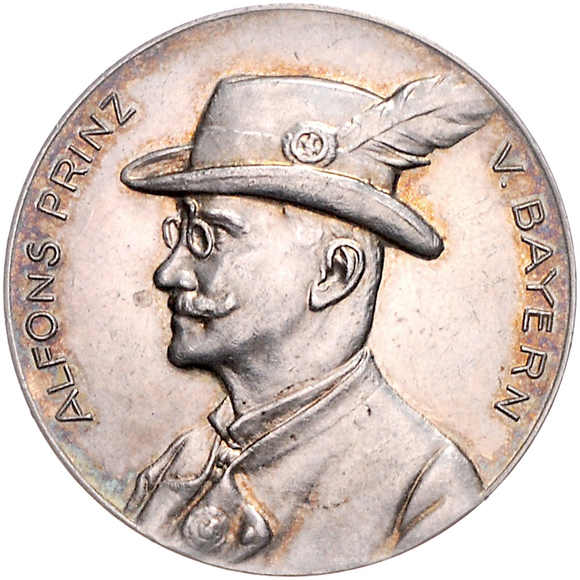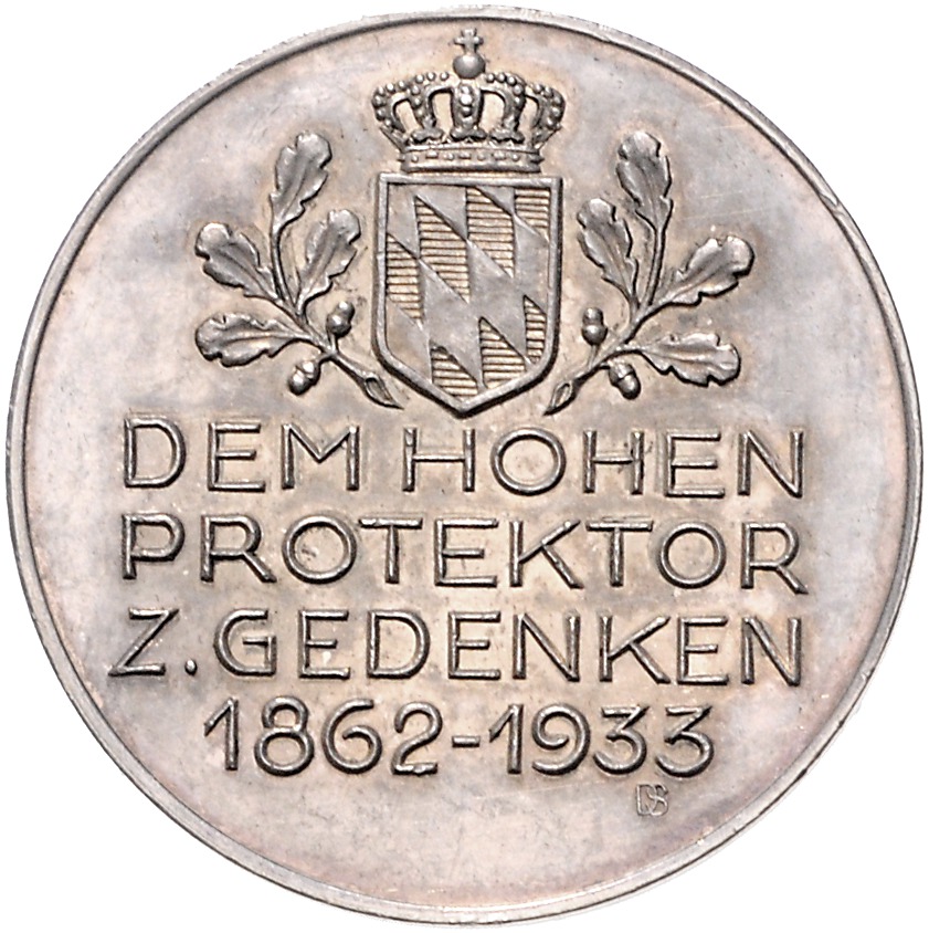 Freistaat 1918-1945. Silbermedaille 1933 (v. DS) auf den Tod von Prinz Alfons v. Bayern, Protektor der bayerischen Schützen, i.Rd: SILBER 900. 36,1 mm, 18,41 g. f.vz