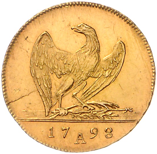 Friedrich Wilhelm III. 1797-1840. Friedrichs d`or 1798 A seltener Jahrgang. Olding 207, Friedberg 2425. kl. Sr. u. Kr. 6,65 g. vz