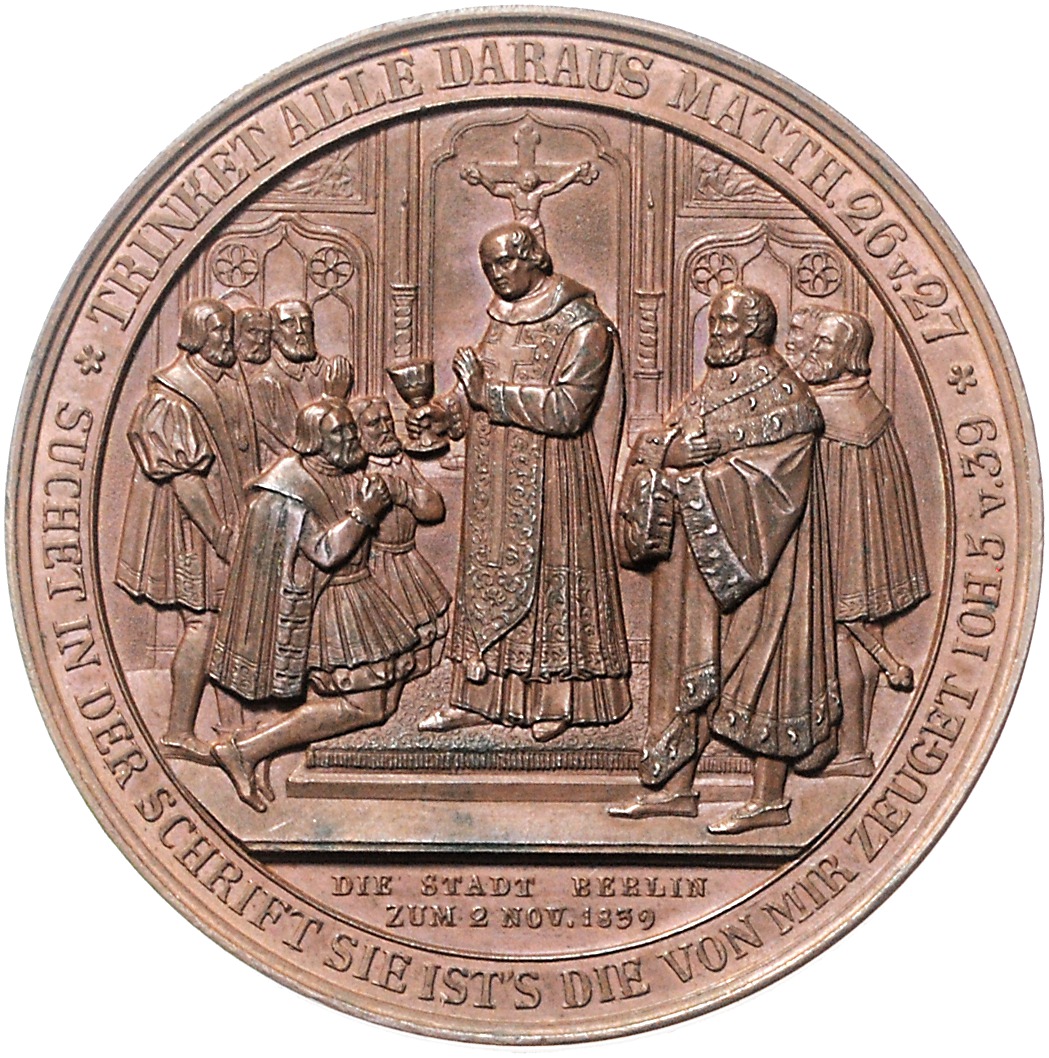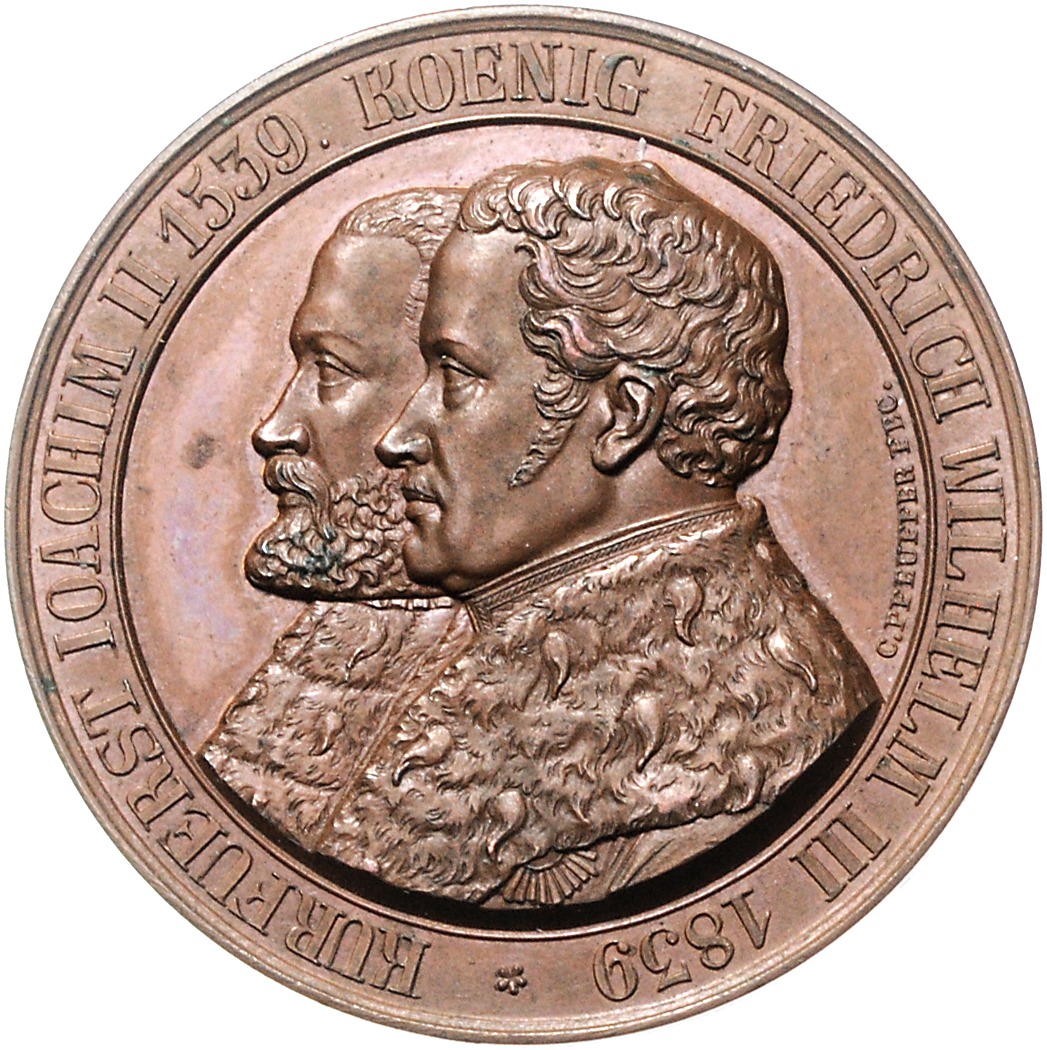 Friedrich Wilhelm III. 1797-1840. Bronzemedaille 1839 (v. Pfeuffer) auf die 300-Jahrfeier der Reformation in der Mark Brandenburg. Slg. Marienburg 3845, Sommer P64. Brozatus 1355a, Slg. Whiting 699 44,9 mm, 57,59 g. vz