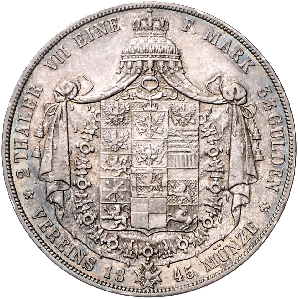 Friedrich Wilhelm IV. 1840-1861. Doppeltaler 1845 A. Kahnt 382, Davenport 771, AKS 69, Thun 258, Olding 302. ss