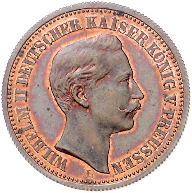 Wilhelm II. 1888-1918. Lot von 2 Stücken: Bronzemedaille 1888 (unsign.) auf die Eröffnung des Deutschen Reichstages (28,2mm 10,3g) | Vergoldete Bronzemedaille 1901 (unsign.) auf 200 Jahre Königreich (mit Öse 27,3mm 7,45g). f.vz