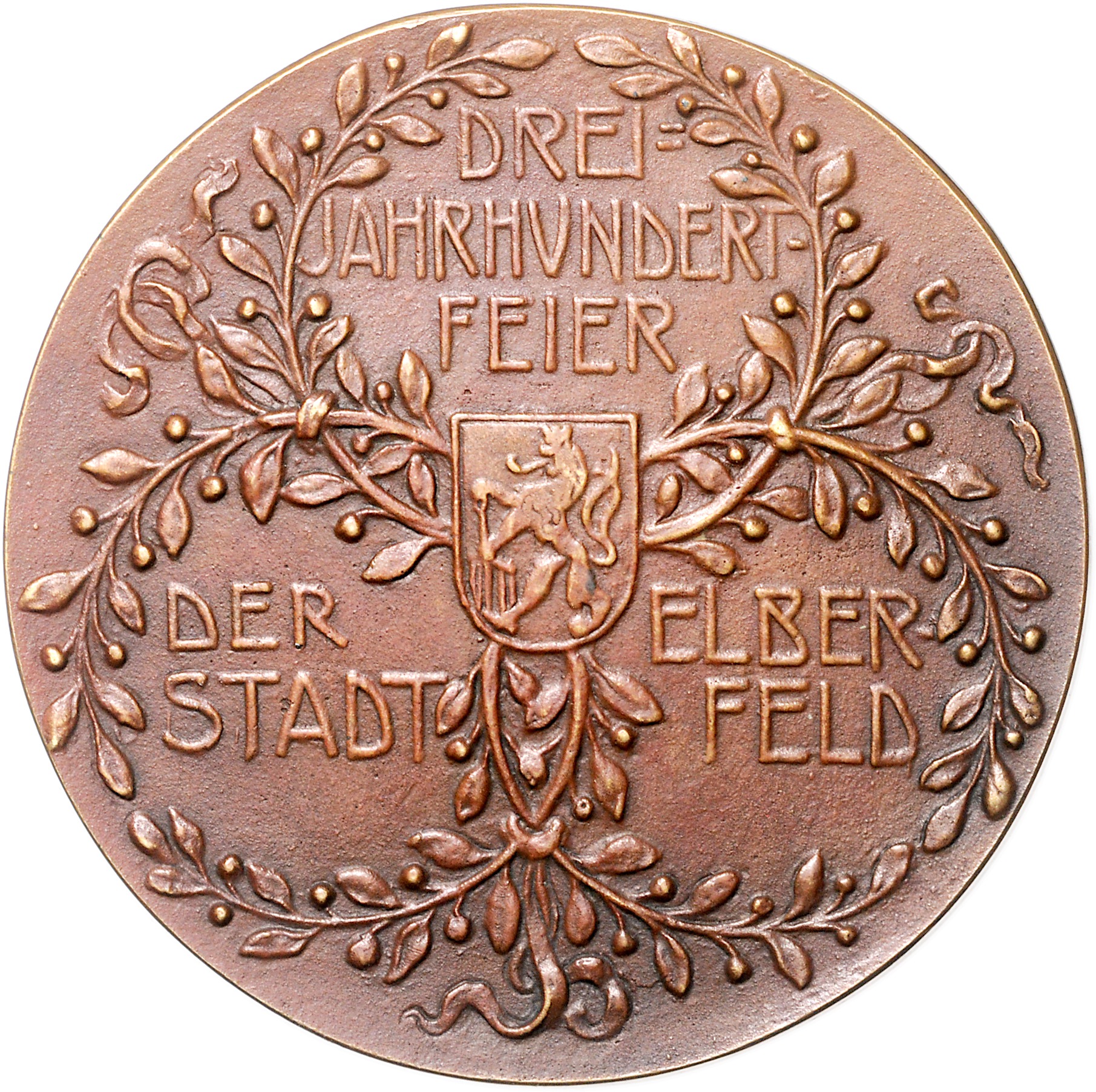 Bronzegussmedaille 1910 auf die 300-Jahrfeier der Stadt Elberfeld. Kienast 67, Slg. Böttcher 5212. 78,0 mm, 155,00 g. gussfrisch