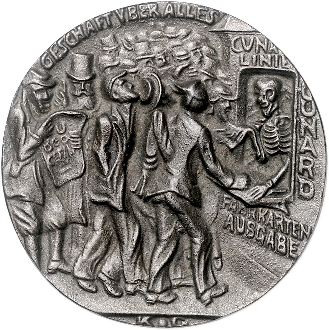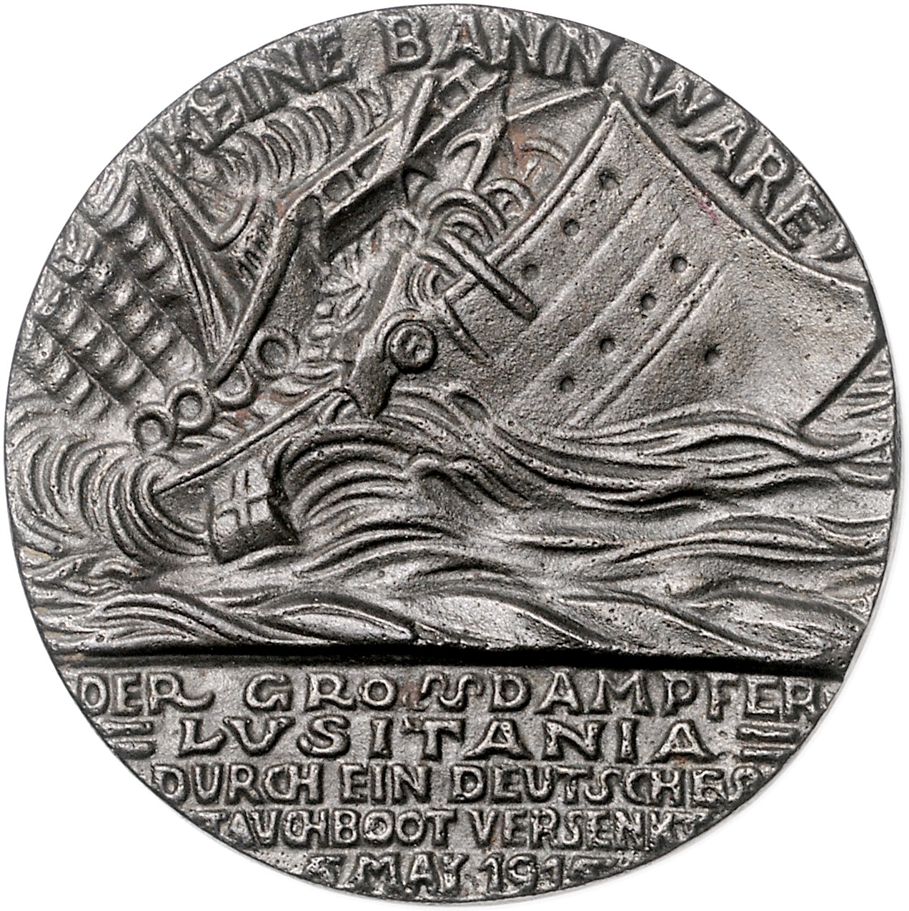 Eisengussmedaille 1915 Auf den Untergang der `Lusitania`, englische Ausgabe mit 5. May. Kienast 156, Slg. Böttcher 5448. 55,0 mm, 59,41 g. gussfrisch
