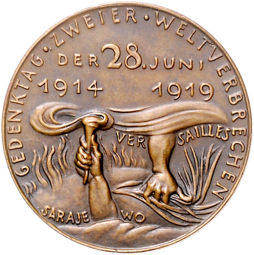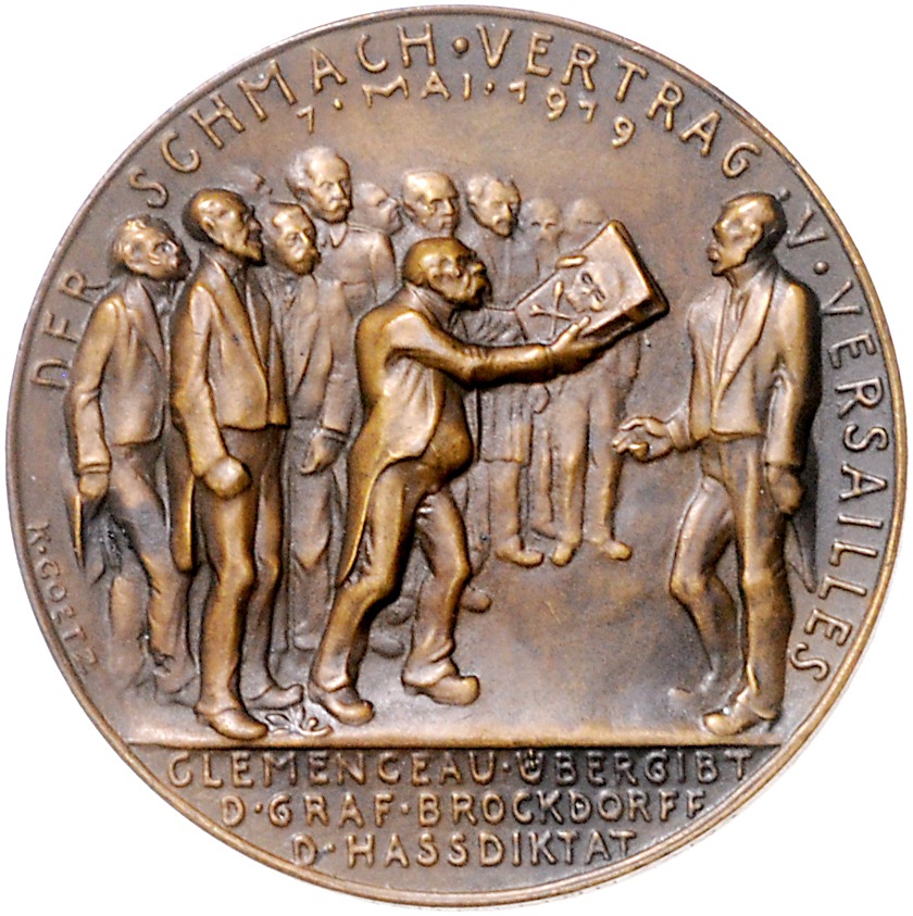 Bronzemedaille 1929 auf den 10. Jahrestag des Versailler Vertrages, i.Rd: BAYER. HAUPTMÜNZAMT. Kienast 426, Slg. Böttcher 6116. 36,1 mm, 19,36 g. vz-st