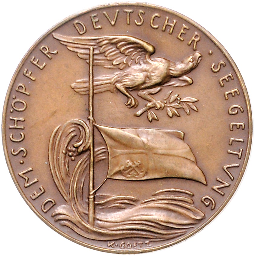 Bronzemedaille 1930 auf den Tod des Großadmirals Alfred von Tirpitz, i.Rd: BAYER. HAUPTMÜNZAMT. Kienast 444, Slg. Böttcher 6180. 36,0 mm, 19,72 g. vz