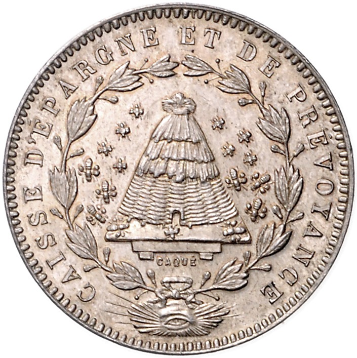 Lot von 2 Stücken: Silberjeton o.J. (v. Caque) Ville d` Angers / Caisse d`épargne et prevoyance (30,2mm 11,64g) | Silbermedaille o.J. (v. Trotin) Prämie der französischen Landwirtschaftsgesellschaft, mit leerer Gravurtafel, i.Rd: Füllhorn ARGENT (37,3mm 23,59g). vz-st