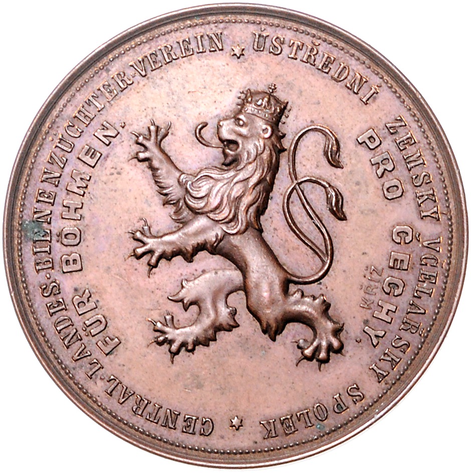 Bronzemedaille o.J. (v. Kriz) Prämie des Bienenzuchtvereins des Landes Böhmen. Doneb. 4196. 40,4 mm, 29,35 g. vz