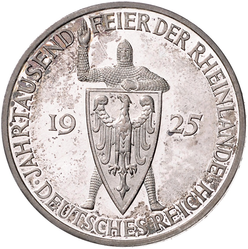 5 Reichsmark 1925 A Zur Jahrtausendfeier der Rheinlande. Jaeger 322. Patina. st