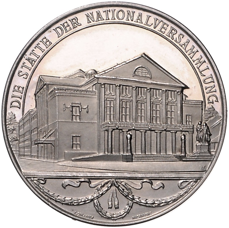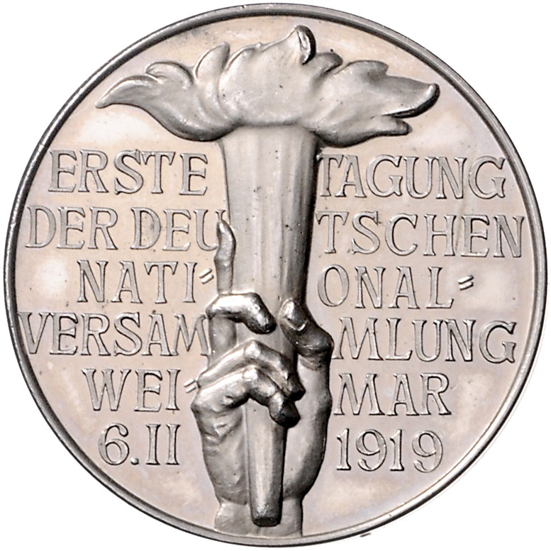 Silbermedaille 1919 (v. Hummel) auf die erste Tagung der Deutschen Nationalversammlung in Weimar. 33,0 mm, 14,33 g. PP