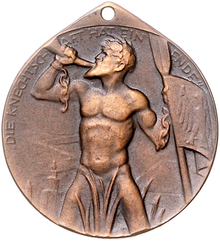 Bronzemedaille 1930 (v. M.&W.) auf die Rheinlandräumung. mitgeprägte Öse 32,7 mm, 15,92 g. vz