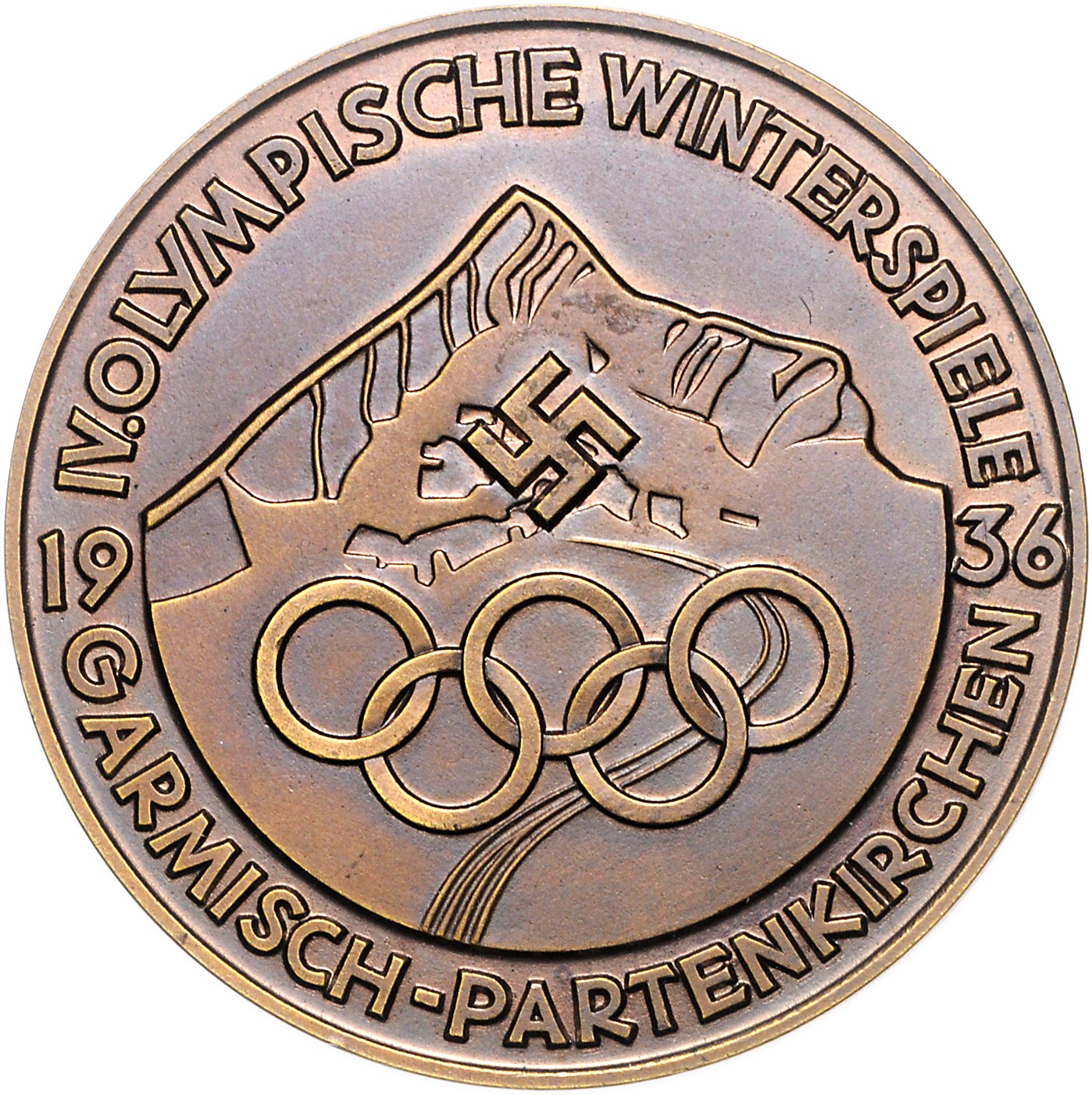 Bronzemedaille 1936 auf die IV. Olympischen Winterspiele Garmisch-Partenkirchen, für Teilnehmer. 60,4 mm, 65,60 g. st