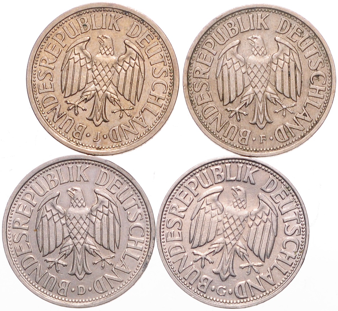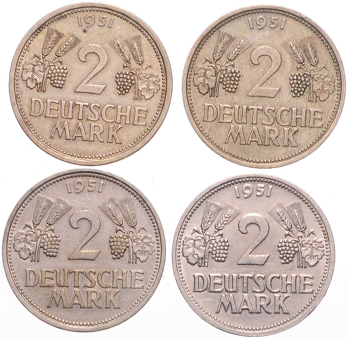 Satz von 4 Stücken: 2 DM 1951 D F G J. Jaeger 386. ss-vz