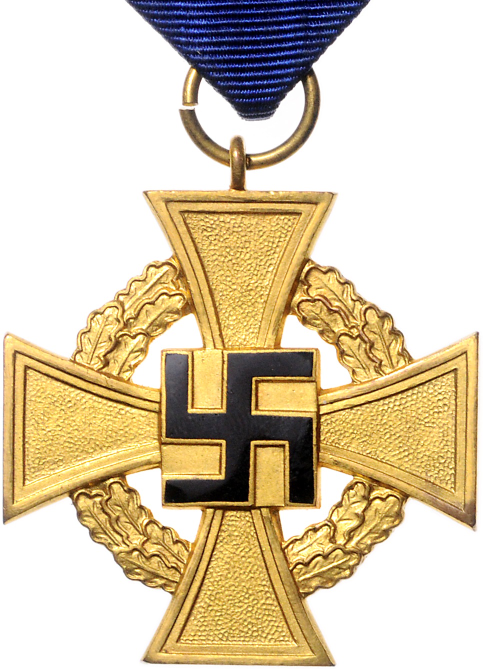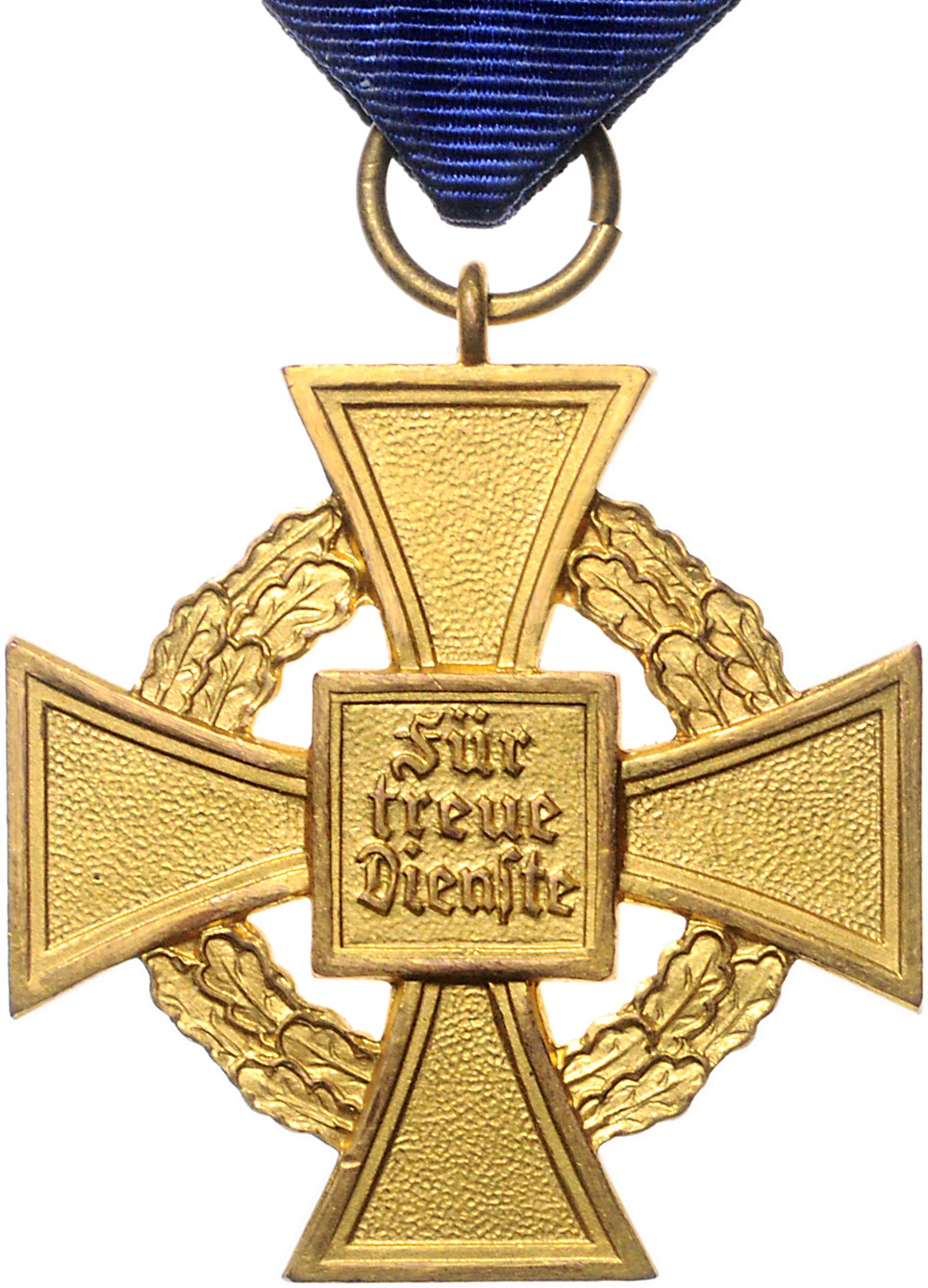 Lot von 2 Stücken: Treuedienst-Ehrenzeichen 1. Stufe für 40 Jahre an blauem Trageband | Abzeichen des Reichsbundes der Deutschen Beamten (RDB), rückseitig GES. GESCH. M.O.S. Hüsken 2508b, OEK 3522. mit intakten Nadelsystemen. prfr.