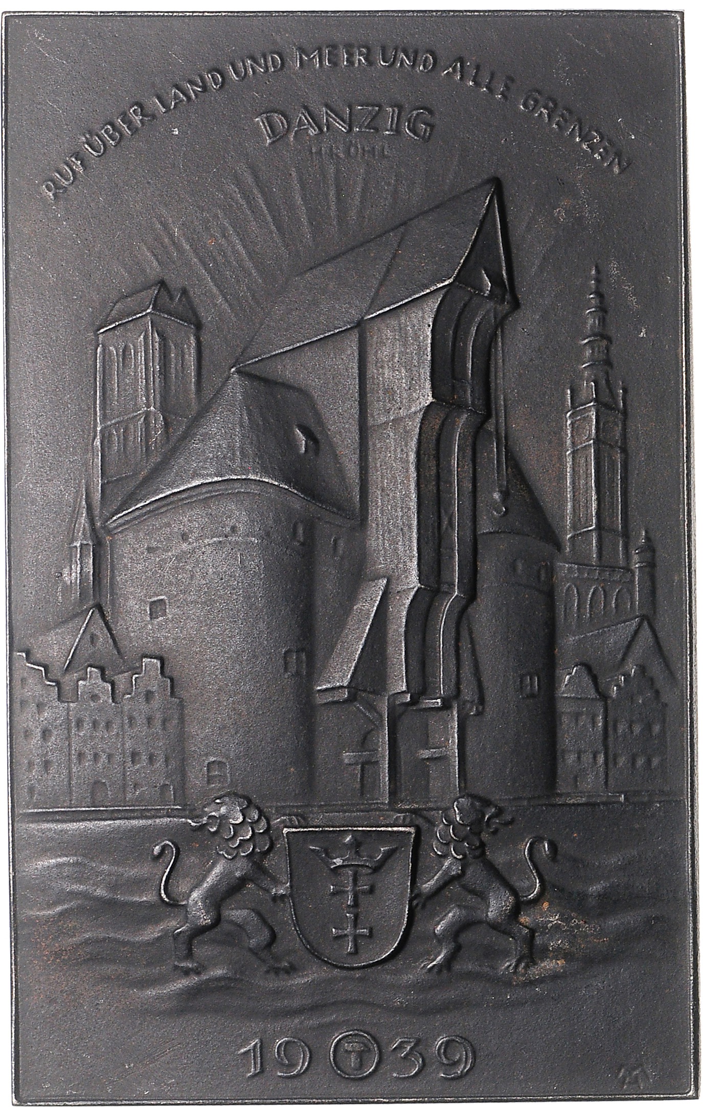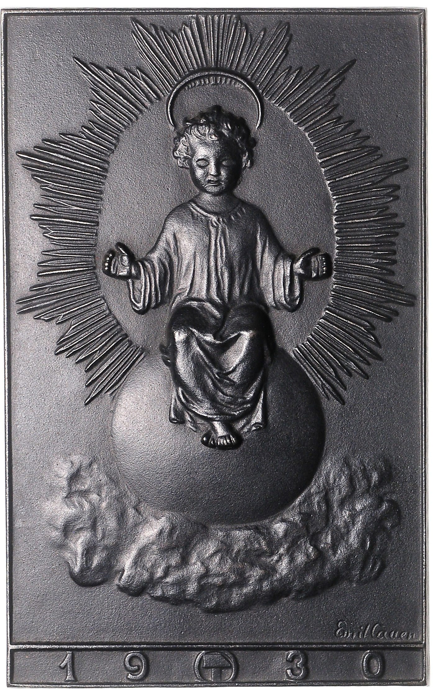 Lot von 3 Eisengüssen: (Lauchhammer/Cauer) Christus als Kind auf Erdkugel, mit Heiligenschein und Mandela (90,9x146mm 211,0g) | 1939 (Lauchhammer/H. Röhl) DANZIG (89,8x142,5mm 246,0g) | 1942 (Lauchhammer) FELDPOST 1942 (89,1x142,9mm 164,82g). Stummann-Bowert 10, 19, 21. gussfrisch