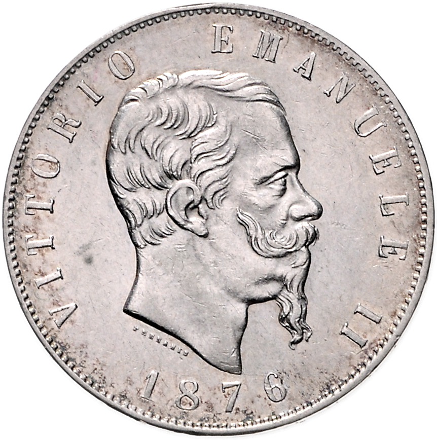 Lot von 4 Stücken: ITALIEN 5 Lire 1876 R (ss) | LITAUEN 10 Litu 1936 (vz, kl. Kr.) | MACAU 100 Patacas 1978 (PP, Auflage nur 610 Exemplare) | MONGOLEI Tugrik (1925) AH15 (ss). K.M. 8.4,83,10,8.