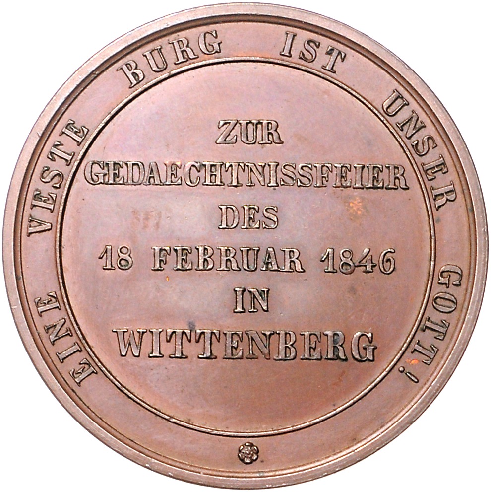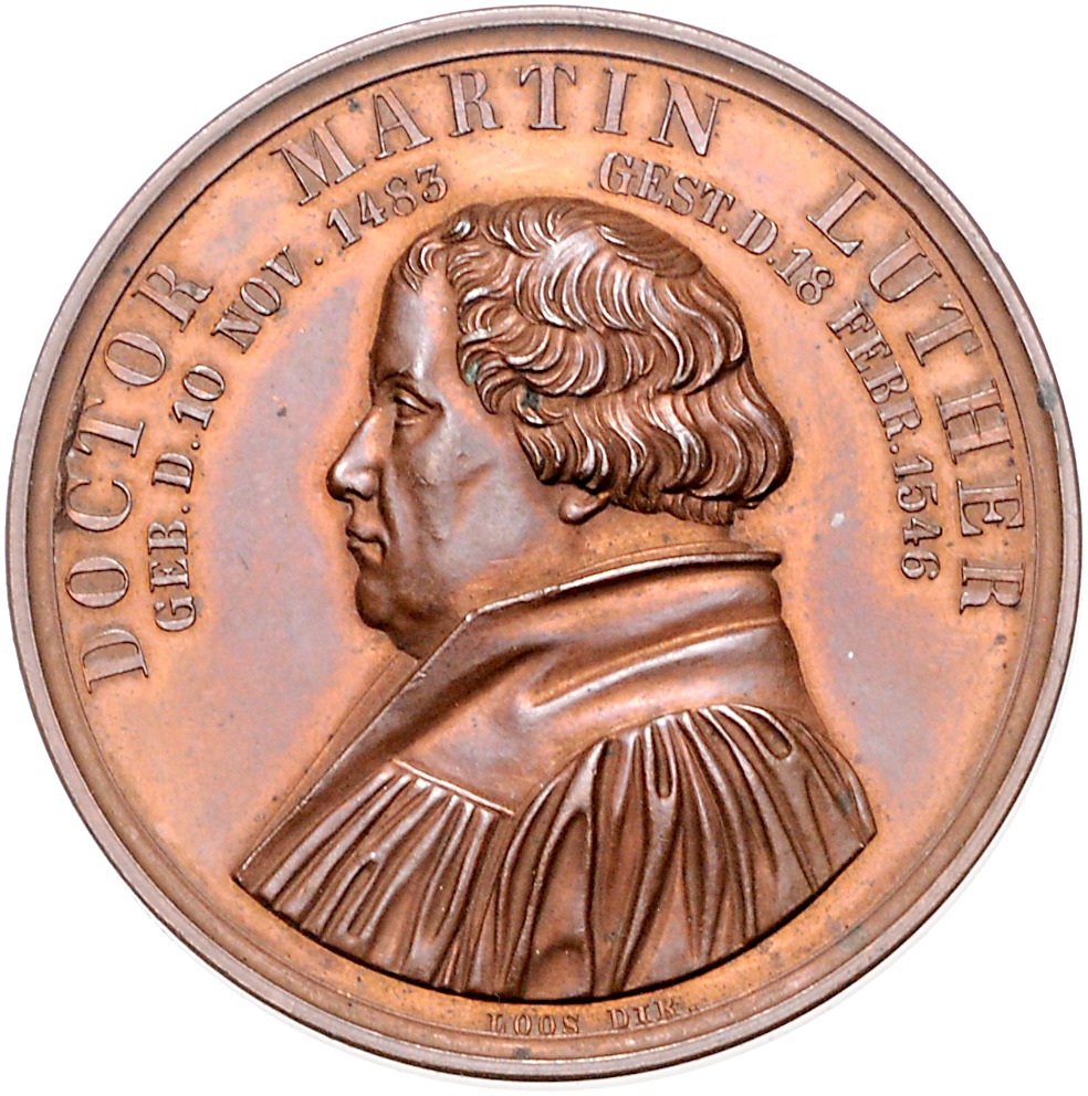 Bronzemedaille 1846 (v. Loos) auf den 300. Todestag von Martin Luther. Brozatus 36a, Slg. Whiting 723. 42,2 mm, 37,34 g. vz