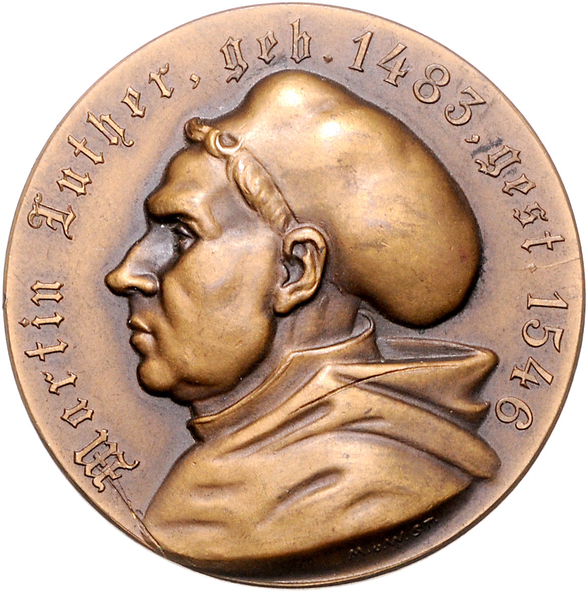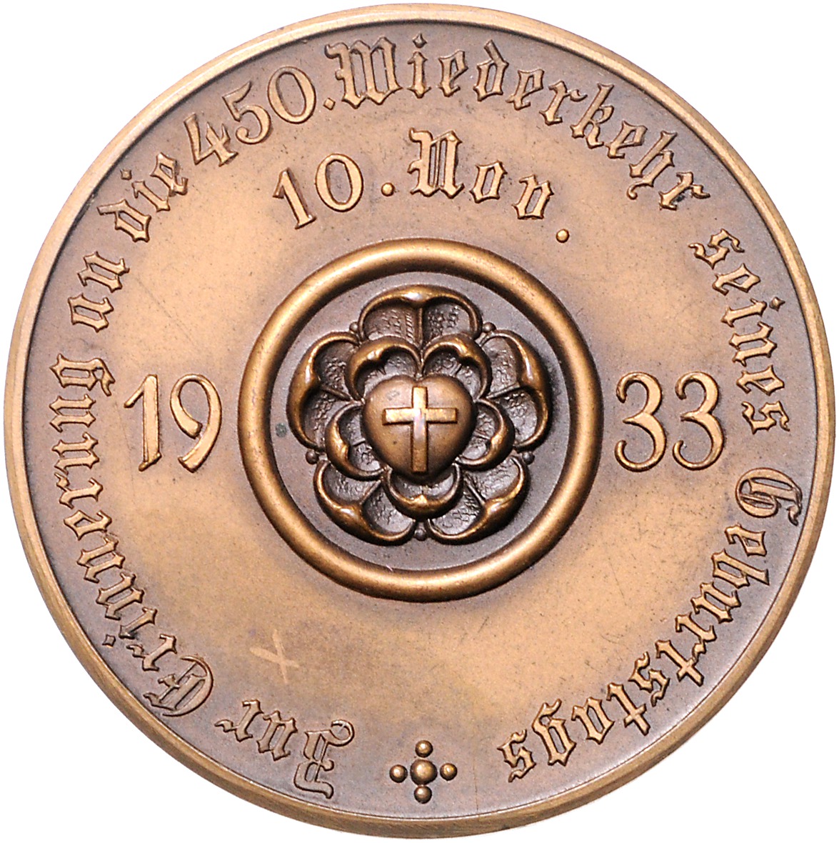 Mattierte Bronzemedaille 1933 (v. M.&W.) auf den 450. Geburtstag von Martin Luther. Brozatus 121. 50,4 mm, 54,89 g. vz-st