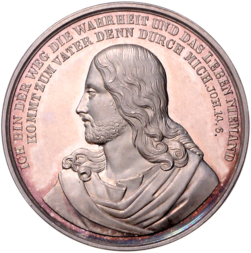 Silbermedaille o.J. (unsign.) ICH BIN DER WEG DIE WAHRHEIT UND DAS LEBEN NIEMAND KOMMT ZUM VATER DENN DURCH MICH. 37,5 mm, 16,43 g. vz-st