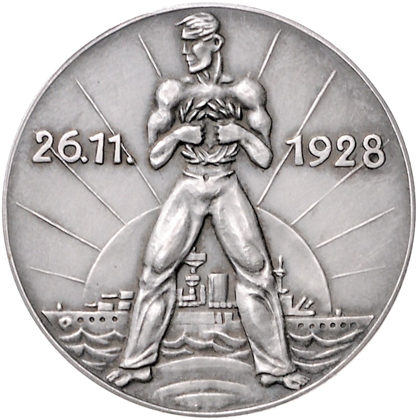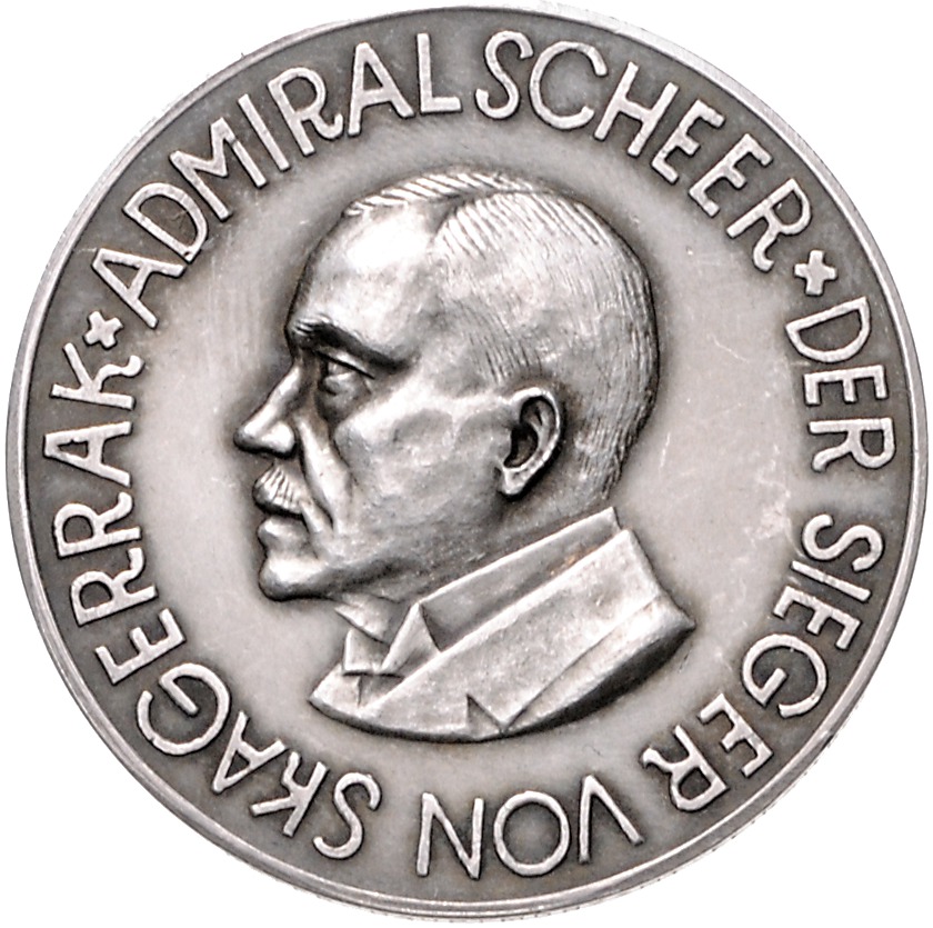 Scheer, Reinhard *1863 +1928. Silbermedaille 1928 (v. Roth) auf den Tod des Admirals, i.Rd: BAYER. HAUPTMÜNZAMT FEINSILBER. mattiert 36,0 mm, 19,92 g. vz-st