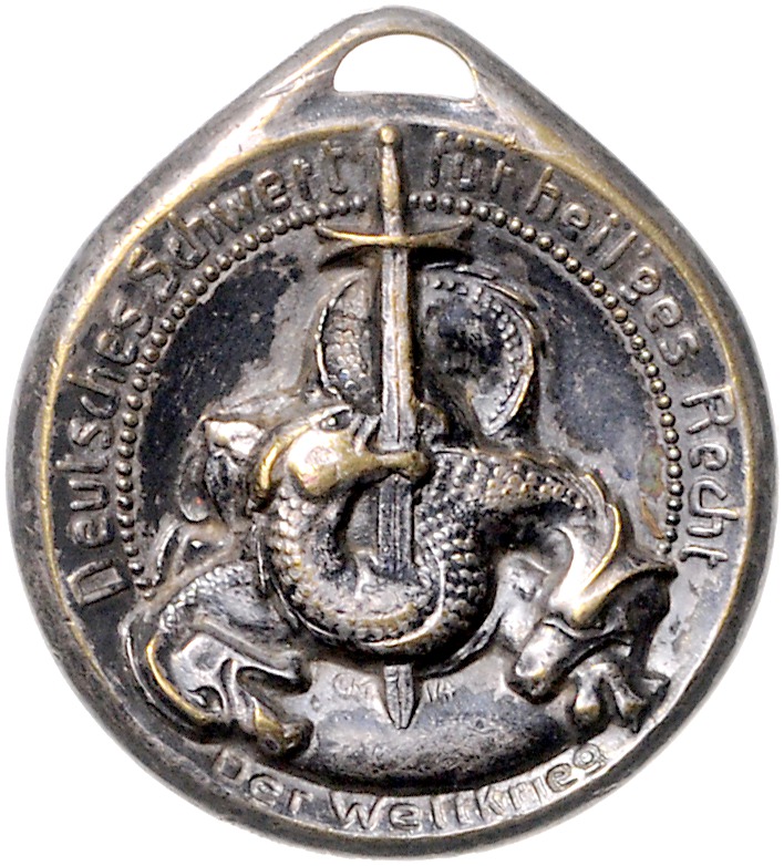 - description: Wilhelm II. Lot von 6 Stücken: Bronzemedaille 1914 (v. Galambos/Grünthal) Ich kenne keine Parteien mehr, ich kenne nur Deutsche (34,4mm 17,54g) | Silbermedaille 1914 (v. EB) Adler 1914 (27,0mm 8,96g) | Silberner Anstecker 1914 (v. M.&W.) auf den Feldzug gegen Frankreich, Russland, England usw. (mit Nadel 28,6mm 11,27g) | Geschwärzte Gussmedaille 1914 (v. C.M.) Deutsches Schwert für heil`ges Recht, i.Rd: L. Huhn Cassel (mitgegossene Öse 29,6mm 17,5g) | Bronzemedaille 1915 (unsign.) Erinnerung an den Weltkrieg 1914/15 (40,3mm 31,81g) | (v. M.&W.) Kriegstaler 1914-1916 (33,4mm 11,71g). Kaiser 67 (Klippe), 77. ss bis vz