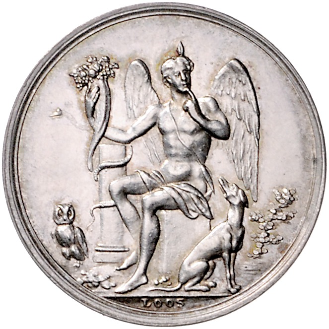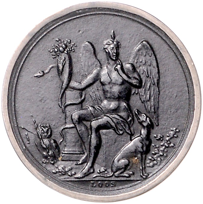 Lot von 2 Stücken: (um 1803 v. Loos) Whistmarke in Silber DEN FINGER AUF DEN MUND (28,4mm 5,41g) | gleiches Stück in Eisen (29,1mm 6,08g). Sommer B80a. f.vz