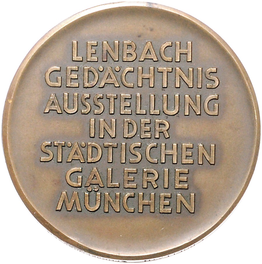 Bronzemedaille 1936 (v. Peter Max) auf die Lenbach-Gedächtnisausstellung in der Städtischen Galerie, i.Rd: C. POELLATH SCHROBENHAUSEN. 38,7 mm, 30,53 g. vz-st