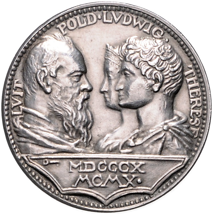 Lot von 3 Silbermedaillen: 1910, auf 100 Jahre Oktoberfest. 32,0mm 16,97g | o.J., auf die Goldene Hochzeit von Ludwig III. und Marie Therese. 23,2mm 5,89g | 1926, Prämie des ADAC, mit Verleihungsgravur. 32,9mm 15,39g. Weber 78, 69, 111. vz