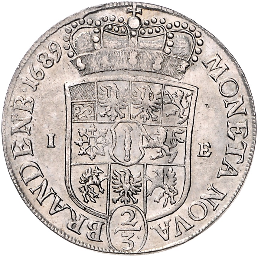 Friedrich III. 1688-1701. Gulden (2/3 Taler) 1689 IE Magdeburg. v. Schrötter 166, Davenport 273. ss