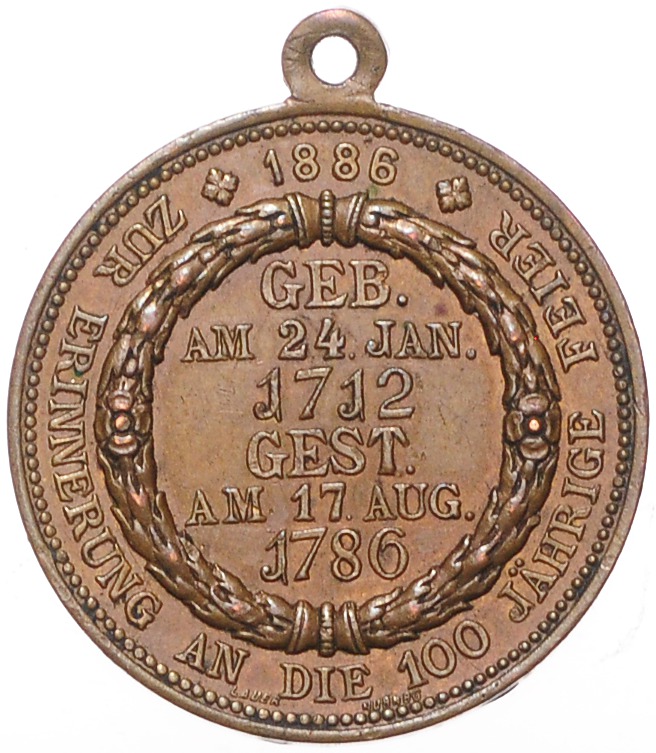Friedrich II. 1740-1786. Bronzemedaille 1886 (v. Lauer) auf seinen 100. Todestag. mit Öse 30,4 mm, 12,54 g. f.vz