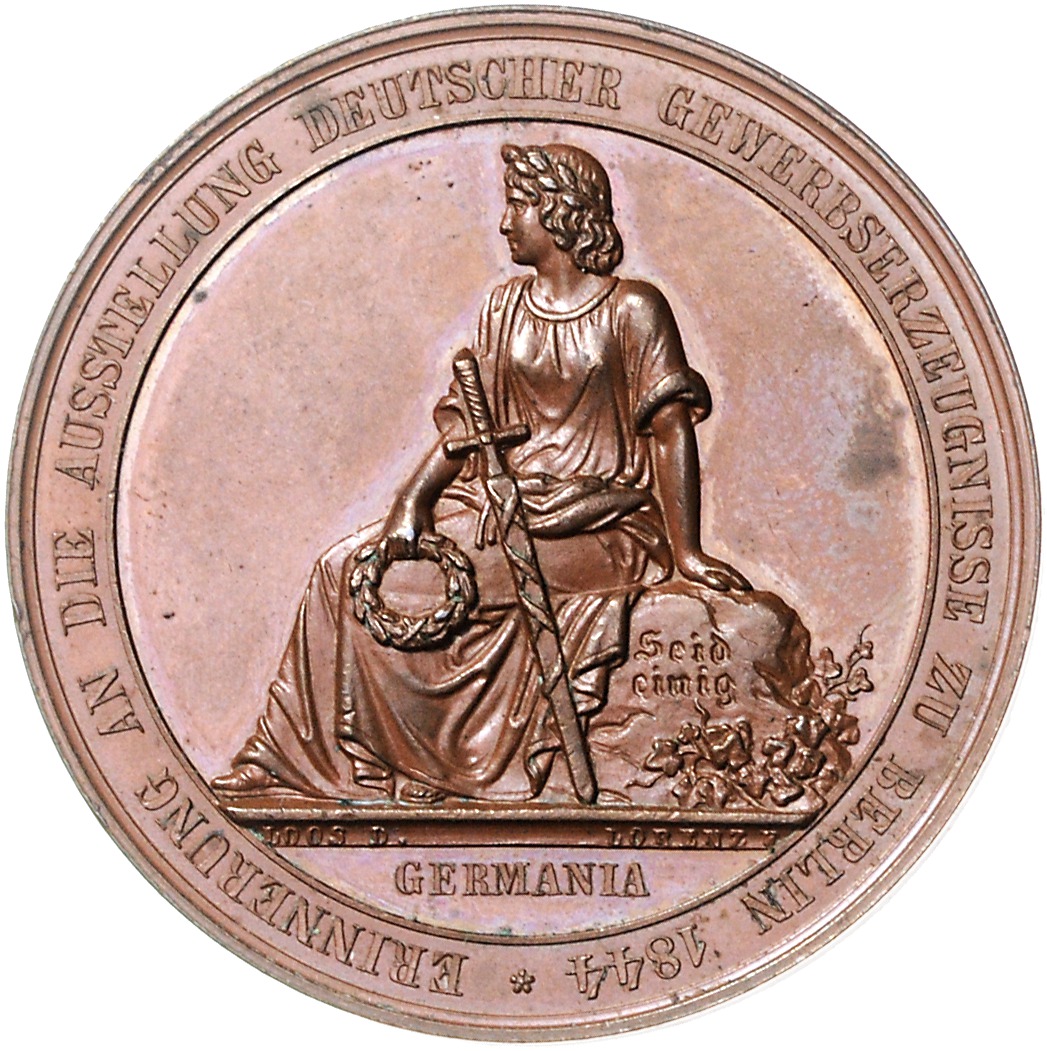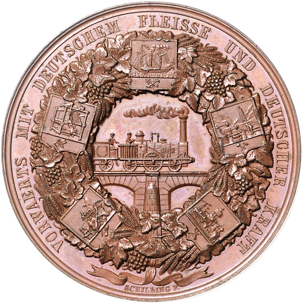 Bronzemedaille 1844 (v. Loos/Lorenz/Schilling) auf die Gewerbeausstellung. Priese 1844/3, Wurzbach 685. 45,0 mm, 50,86 g. vz-st