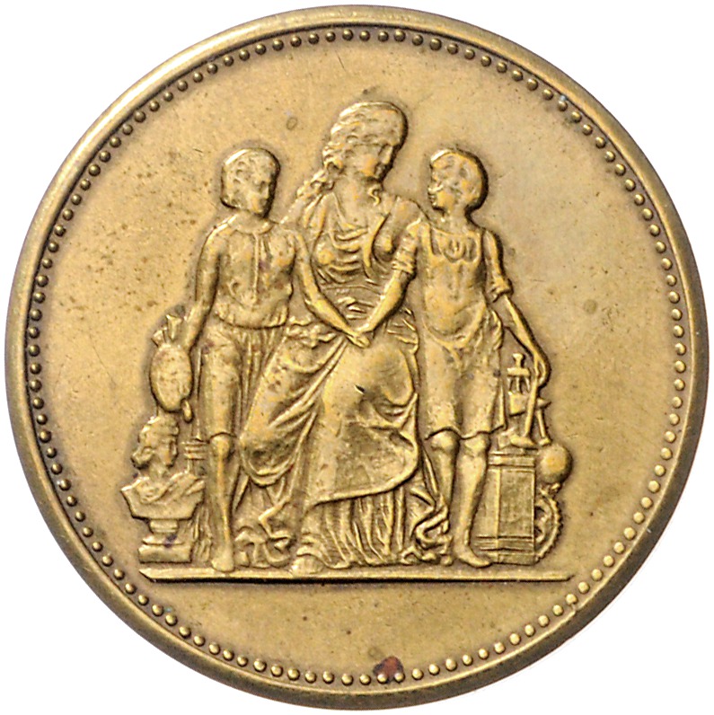 Lot von 2 Stücken: Bronzemedaille 1907 (unsign.) Zum Andenken an die Deutsche Armee-, Marine u. Kolonialausstellung (mit Öse 24,8mm 6,3g) | Vergoldete Bronze-Werbemarke der Fa. Schuler, Göppingen, anlässlich der Deutschen Armee-, Marine u. Kolonialausstellung (34,1mm 20,88g). Priese 1907/9, 1907/12, Hasselmann 494. vz