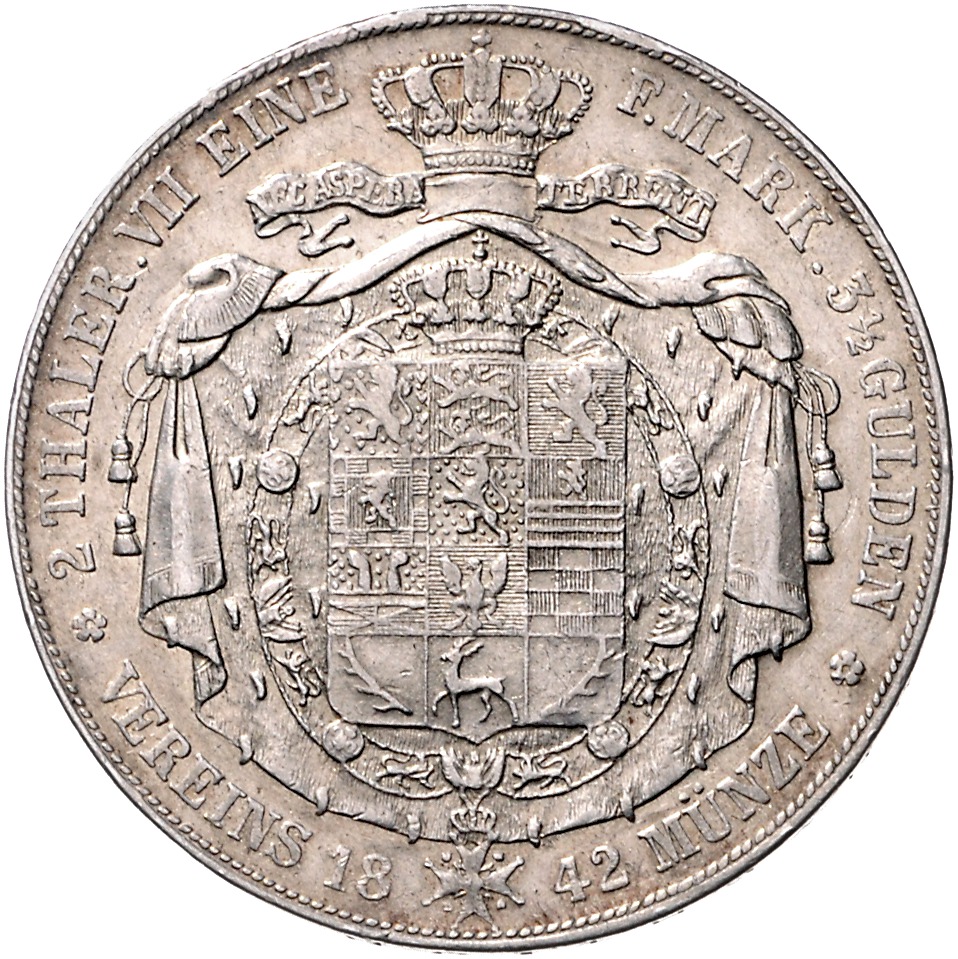Wilhelm 1831-1884. Doppeltaler 1842. Kahnt 156, Davenport 633, AKS 72, Thun 118. ss-vz