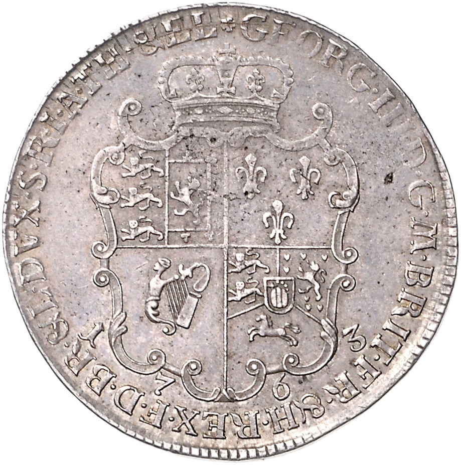 Georg III. 1760-1820. Ausbeutetaler 1763 IAP der Grube `Lautenthals Glück`. Davenport 2108, Welter 2806. ss-vz