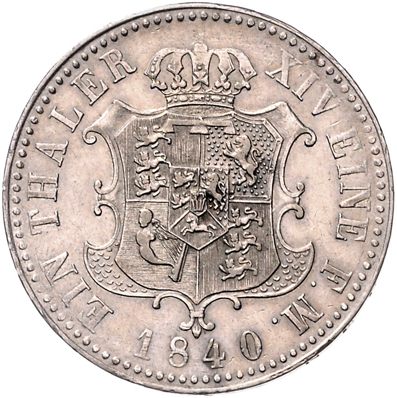Ernst August 1837-1851. Taler 1840. Kahnt 228, Davenport 670, AKS 102, Thun 160. kl. Rf. ss