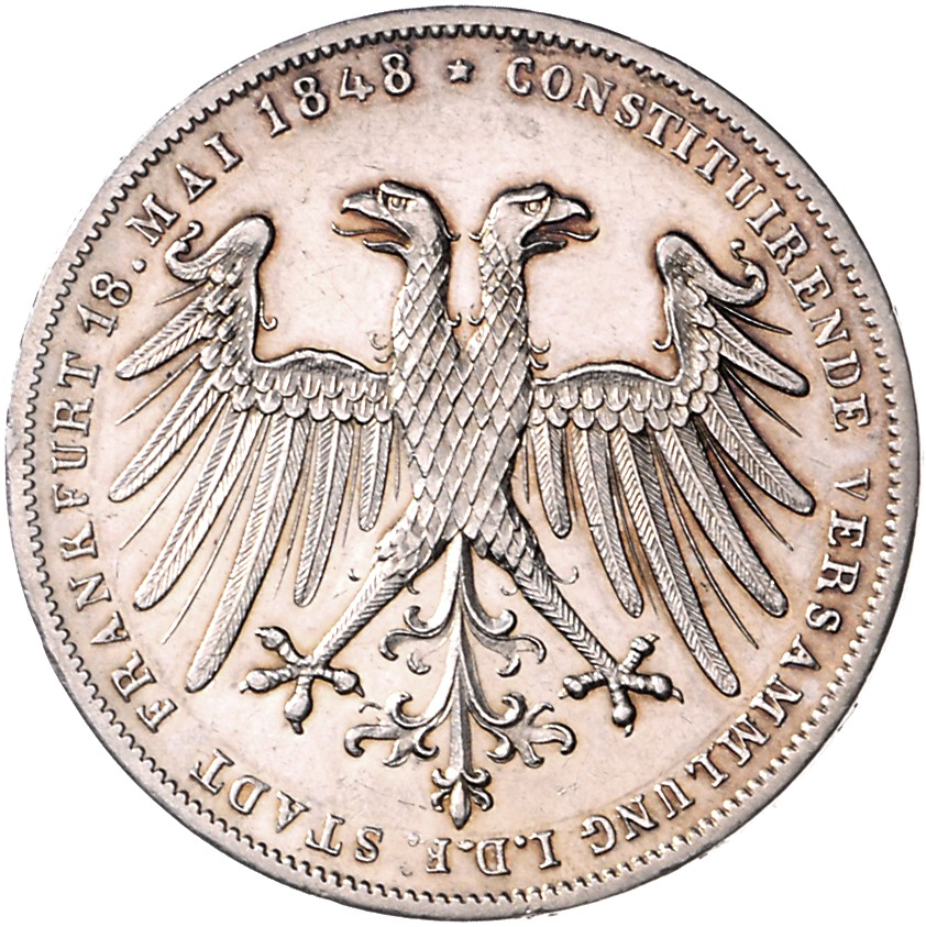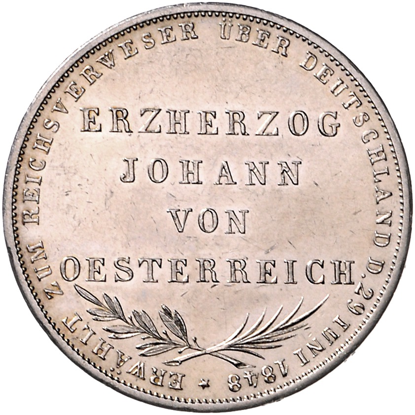 Doppelgulden 1848 Erzherzog Johann v. Österreich, erwählt zum Reichsverweser. Kahnt 176, Davenport 644, Slg. Montenuovo 39, AKS 135. kl. Kr. f.vz