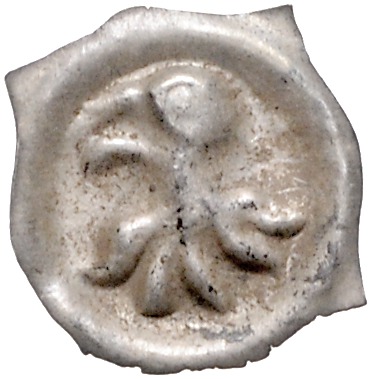 Einseitiger vierzipfliger Pfennig (Rappen, nach 1377) Rabenkopf nach links. 0,33 g. ss