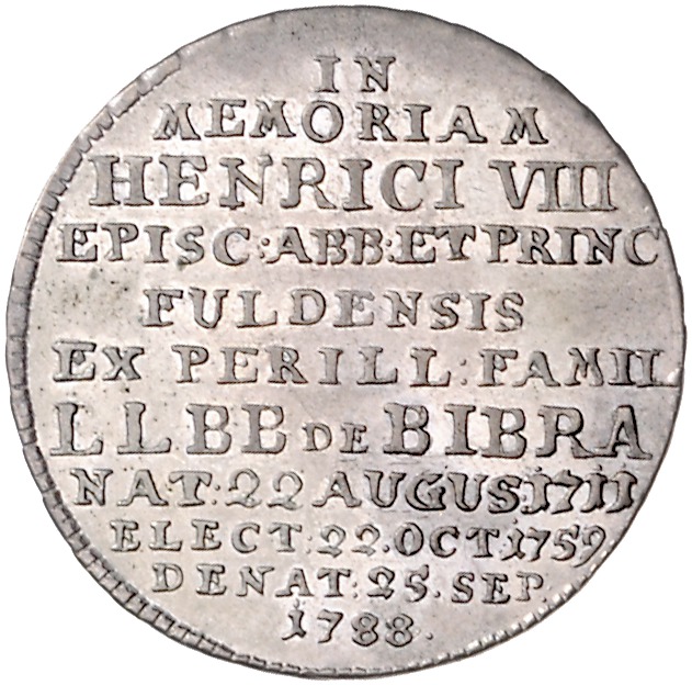 Heinrich VIII. von Bibra 1759-1788. 1/6 Taler 1788 auf seinen Tod. Herquet 129. f.st