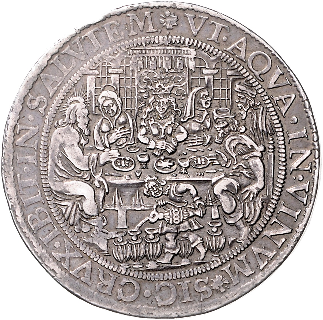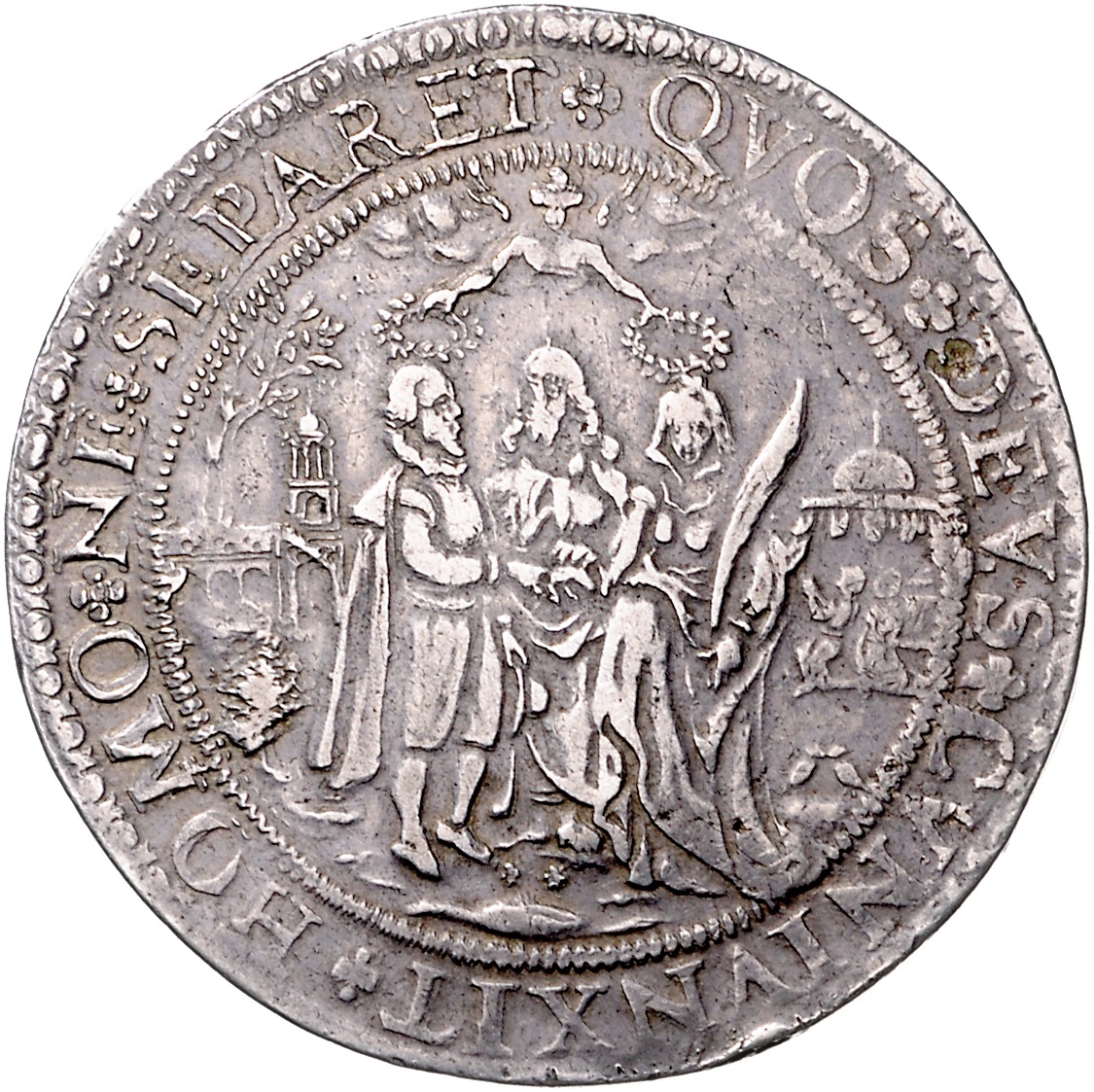 Doppelter Hochzeitstaler o.J. Gaed. vgl. 1595. Madai 5226, Kahane 188, Behrens vgl. 727. ss-vz