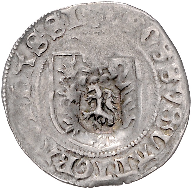 Ludwig I. 1413-1458. Lot von 2 Meissner Groschen o.J. 1) in den Winkeln L-V-D-E, mit Gegenstempel: nach rechts schreitender Löwe und 2) mit Gegenstempel: nach links steigender Löwe. Krusy X 17 var. Gegenstempel ss. s-ss