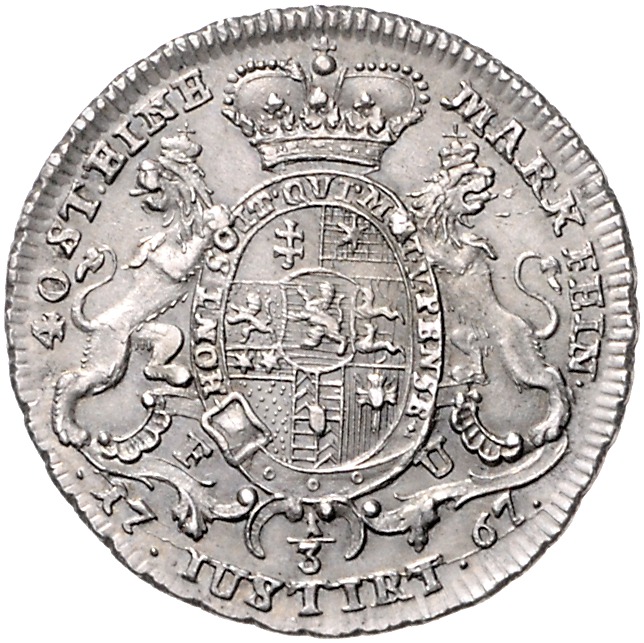 Friedrich II. 1760-1785. 1/4 Konventionstaler 1767 FU großer Kopf. Schütz 1872, Müller 2742b. vz