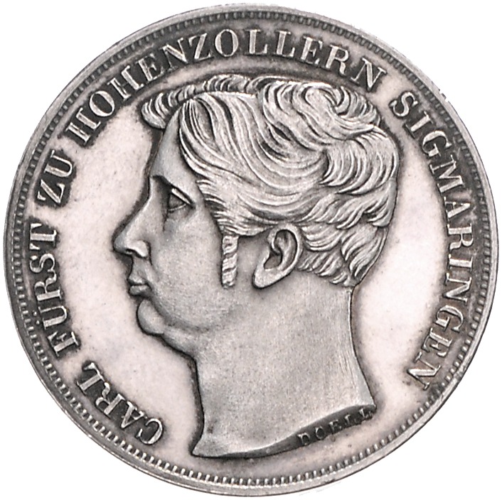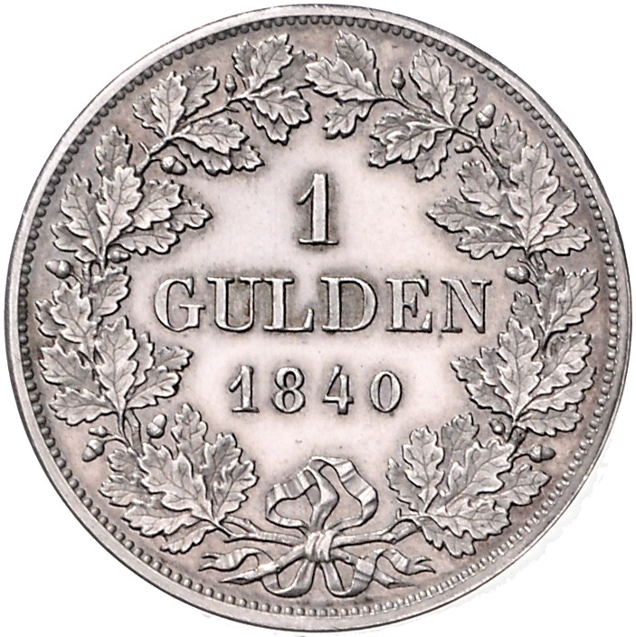 - description: Carl 1831-1848. Dickabschlag vom Gulden 1840 in 4-fachem Gewicht, mit handgravierter Randschrift: PROBATI NUMISMATIS EXEMPLUM. Exemplar der Slg. Wurster, November 1975 Nr. 1469 Z=15250 DM. Laut Anmerkung bei Slg. Wurster wurden auf Wunsch des Fürsten Karl Egon II. zu Fürstenberg 3 Stücke in 4-fachem Gewicht gefertigt. `Von diesen Abschlägen sind nur je ein Exemplar im Münzkabinett zu Donaueschingen erhalten, die anderen beiden Exemplare sind verschollen`. AKS 12 Anm., Jaeger S. 57 Nr. 22 (nur 3 Exemplare geprägt). Stutzmann 700 var. (Slg. Wurster, dort einziges Exemplar im Handel) 42,36 g. vz-st