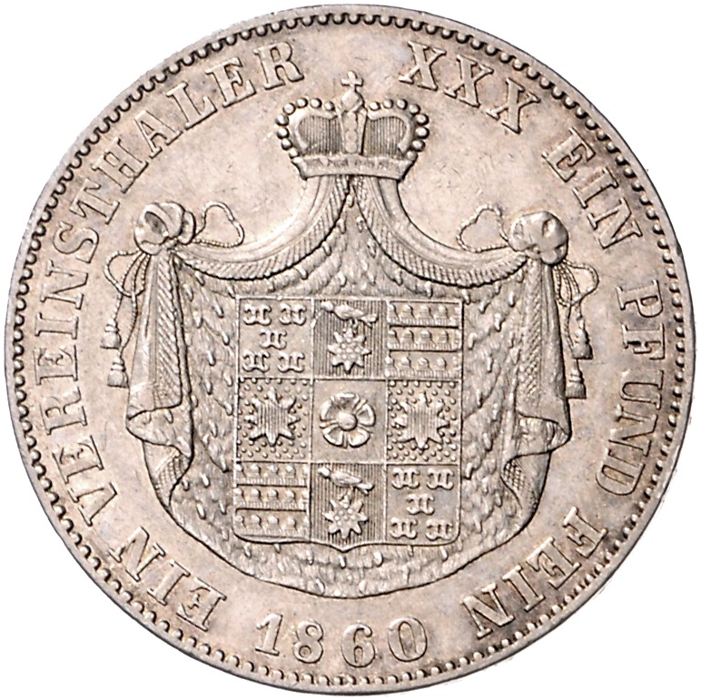 Paul Friedrich Emil Leopold 1851-1875. Vereinstaler 1860. Kahnt 283, Davenport 725, AKS 16, Thun 213. ss+