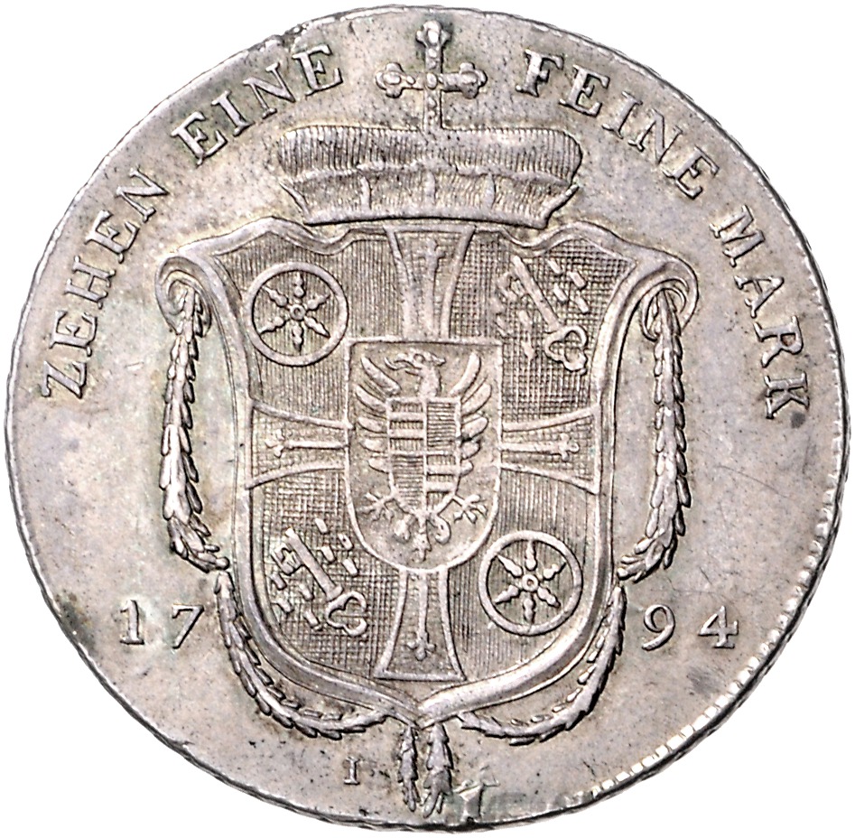 Friedrich Karl Joseph von Erthal 1774-1802. Konventionstaler 1794. Slg. Walther 64, P.A. 771, Davenport 2429. kl. Sf. am Rand. f.vz