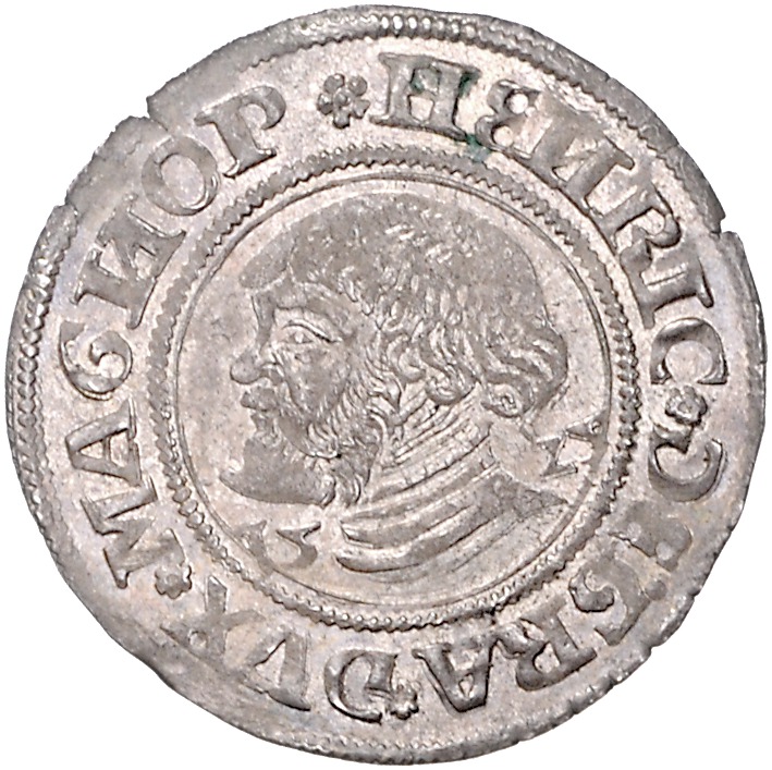 Heinrich V. 1503-1552. Doppelschilling 1525. Kunzel 36 C/a. mit Prägeglanz. vz+