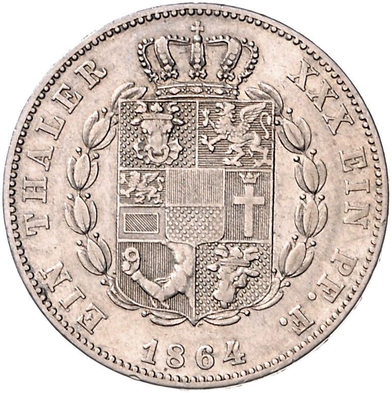 Friedrich Franz II. 1842-1883. Vereinstaler 1864 A. Kahnt 293, Davenport 728, AKS 38, Thun 215. ss