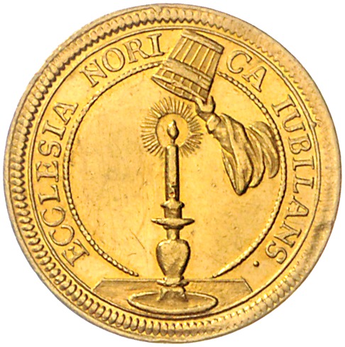 Dukat 1717 auf das Reformationsjubiläum. Kellner 77, Friedberg 1902. winz. Kr. vz-st